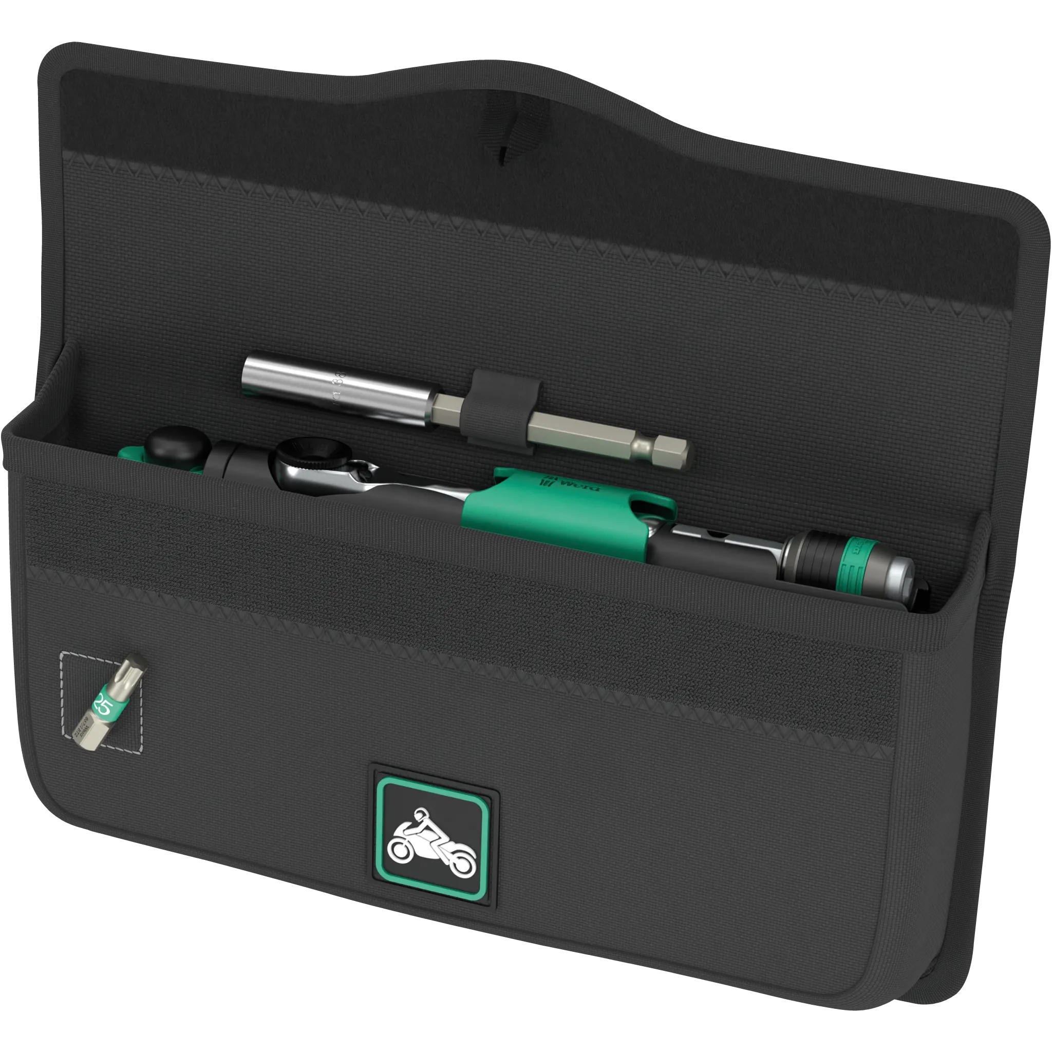 Mit dem ToolâCheck PLUS Motorrad 1 hast Du unterwegs alles parat, was an Deinem Bike schnell getan werden muss. Die kompakte Tasche passt ins Staufach, hĂ€lt mit Klett sicher und bietet vorne eine MagnetflĂ€che â Schrauben und Bits bleiben dort, wo Du sie brauchst.