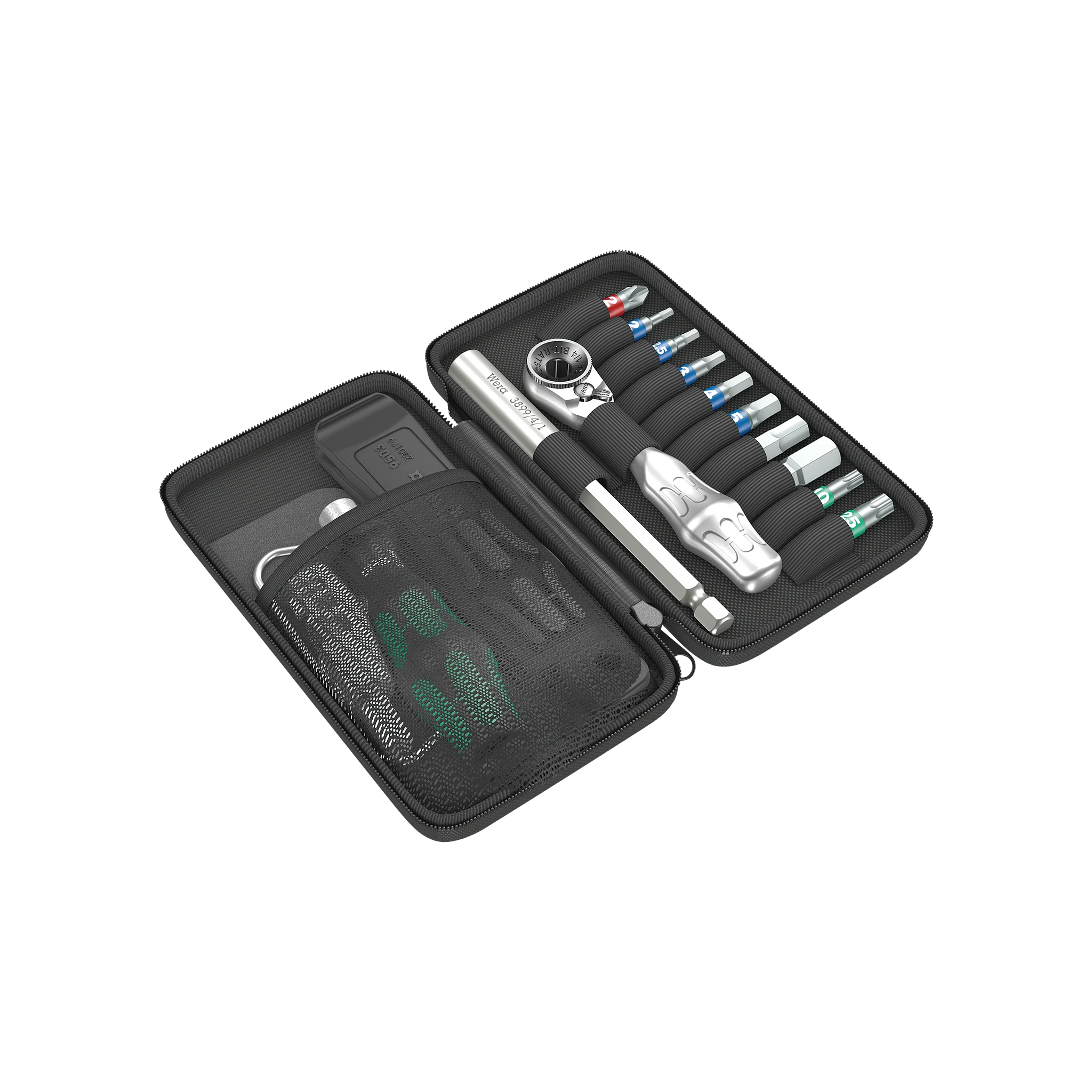 Die speziell von den Rad-Enthusiasten bei Wera entwickelte Tasche passt ideal in die Trikottasche und ist daher auch für Rennradfahrer ohne Satteltaschen interessant. Auf der Rückseite befinden sich sogar noch zwei Schlaufen für CO2 Kartuschen. Und sie kommt mit einem kleinen Tool Rebel Leder Etui für Ausweis und Karten. Platz für Deinen Haustürschlüssel findest Du auch.